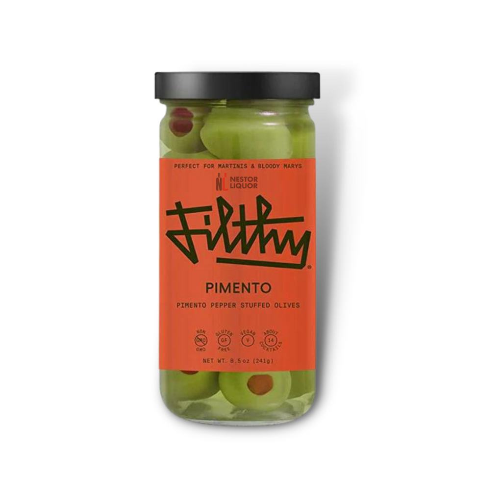 Bathed in our uniquely blended ‘Filthy’ brine, this fashionably filthy olive complements your premium vodka or gin-filled drink. Add a few to your next martini or other gin or vodka cocktails. You're guaranteed to enjoy Filthy Pimento Olives.