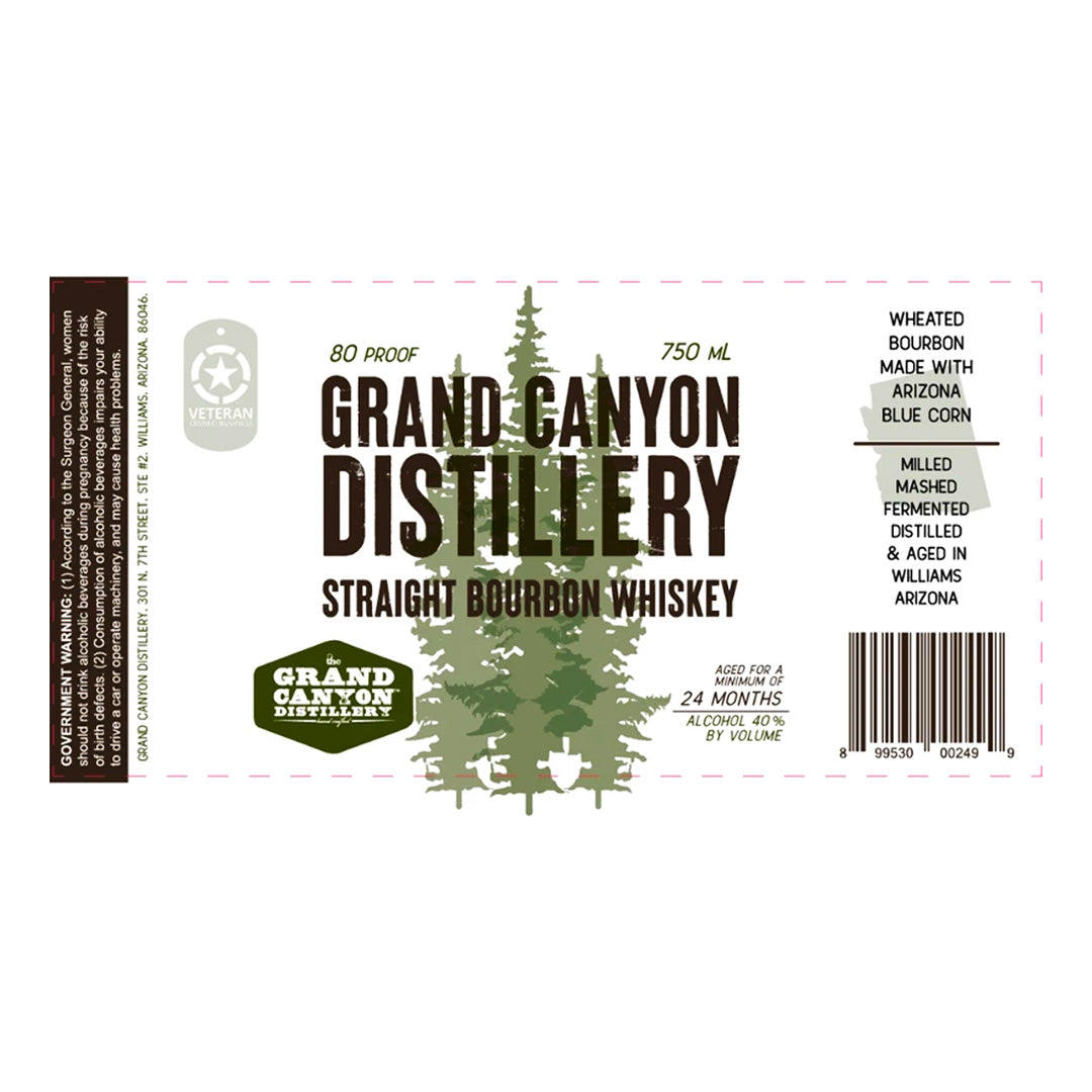 Grand Canyon Distillery Bourbon Whiskey - This Straight Bourbon Whiskey from The Grand Canyon Distillery is made from Arizona blue corn and has been aged for a minimum of 24 months. Milled, mashed, fermented, distilled and aged in Williams, Arizona and bottled at 80 proof.