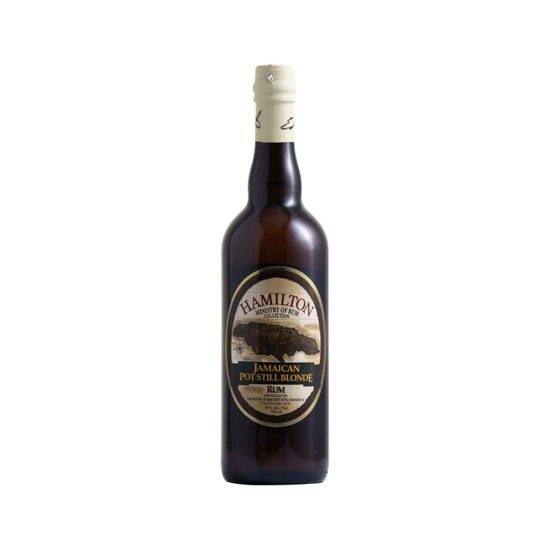 Hamilton Jamaican Pot Still Blonde Rum - Hamilton Jamaican Pot Still Blonde Rum is a blend of extra light, light, and heavy pot still rums which is distilled by the renowned Worthy Park Estate, which farms over 210,000 acres of cane. Die-hard rum aficionado Ed Hamilton handles the bottling and labeling. It shows pronounced aromas and flavors dominated by ripe bananas and other tropical fruit. The typical caramel and molasses notes provide a profile that can be appreciated by rum lovers of all stripes.