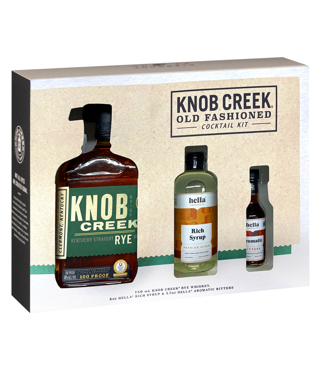 Knob Creek Rye Old fashioned cocktail set WITH/ Bitters Syrup - Kit includes Knob Creek Kentucky Straight Rye Whiskey 100 proof (750ML), Hella Bitters, and Hella Rich Syrup and boasts a fresh, light rye aroma balanced with cinnamon and oak. Perfect gift for a whiskey lover!