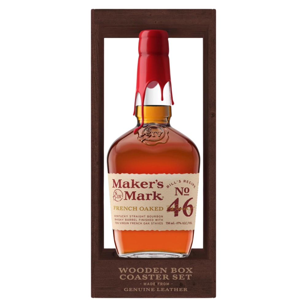 Maker's Mark 46 Gift Set W/ Wood Box & 2 Leather Coasters