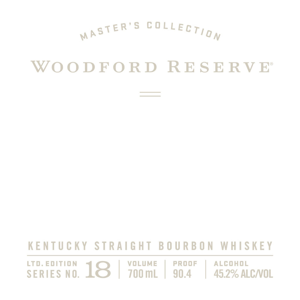 Woodford Reserve Master's Collection Historic Entry Proof - Woodford Reserve Master’s Collection No. 18 Historic Entry Proof Kentucky Straight Bourbon is bottled at 45.2% ALC/VOL (90.4 Proof). Produced by the Woodford Reserve Distillery.